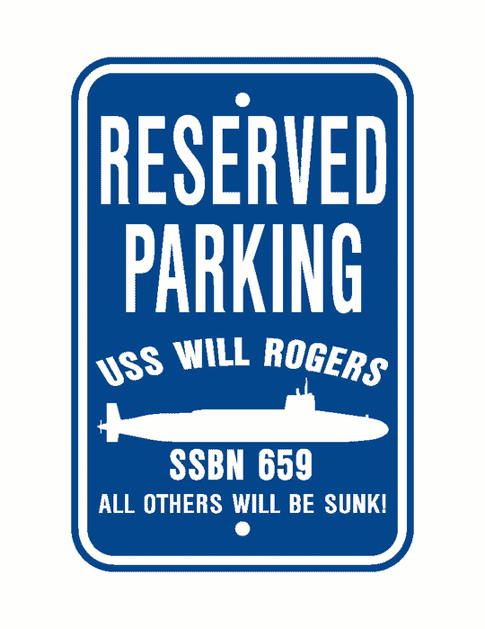 USS WILL ROGERS SSBN 659 Aluminum Parking Sign Blue / White 12" x 18" Military USN PS001