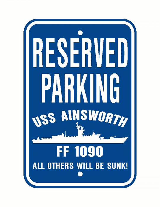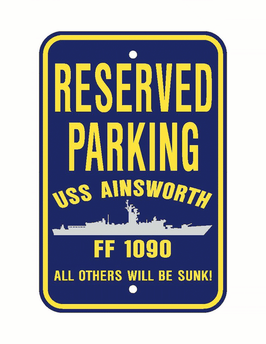 USS AINSWORTH FF 1090 Aluminum Parking Sign Blue / White 12" x 18" Military USN PS001