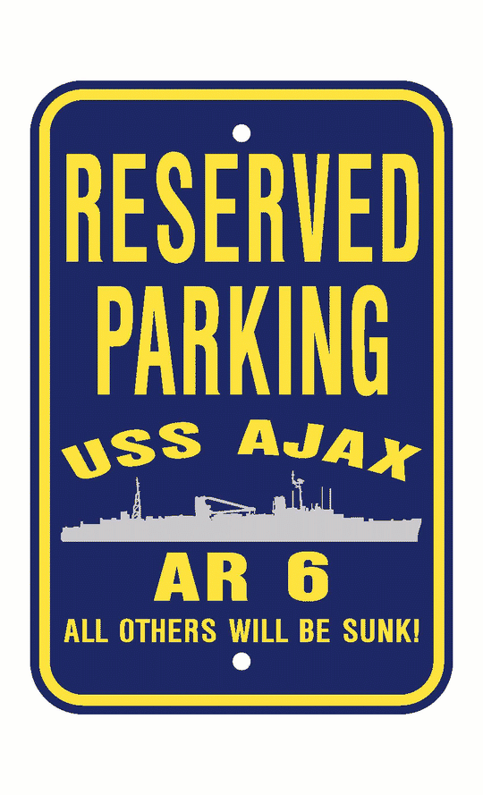 USS AJAX AR 6 Aluminum Parking Sign Navy Blue / Yellow 12" x 18" Military USN PS003
