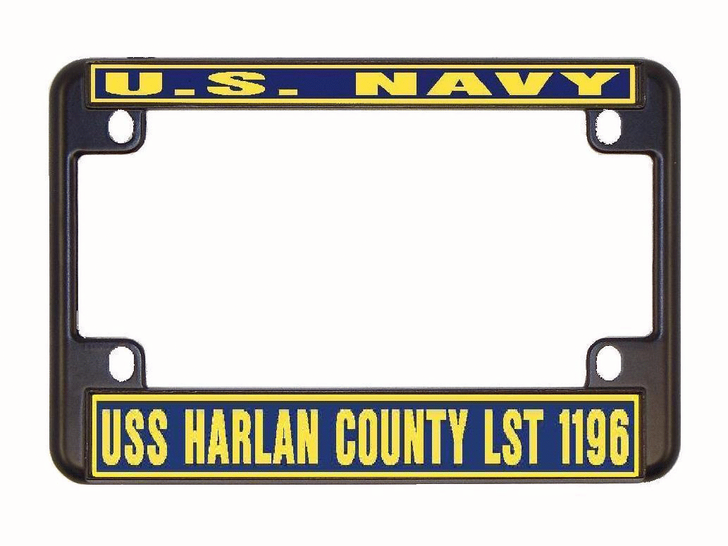 USS HARLAN COUNTY LST 1196 Motorcycle License Plate Frame Military USN PF003