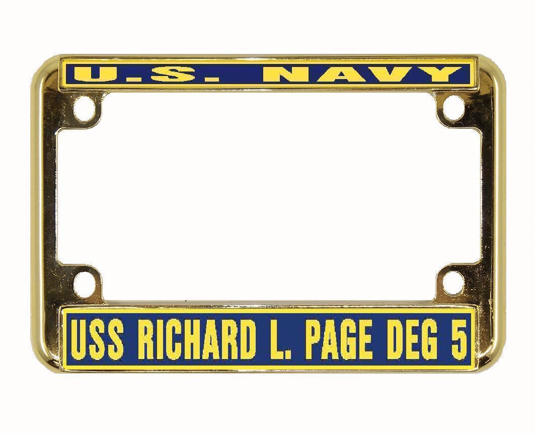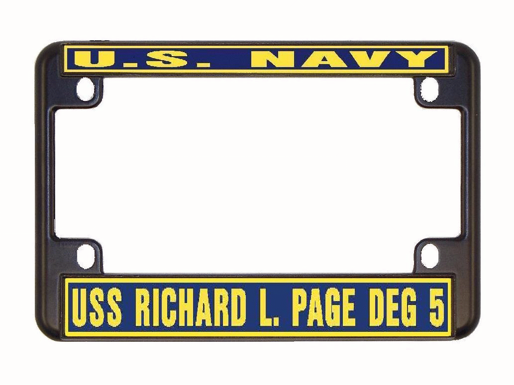 USS RECHARD L PAGE DEG 5 Motorcycle License Plate Frame Military USN PF003