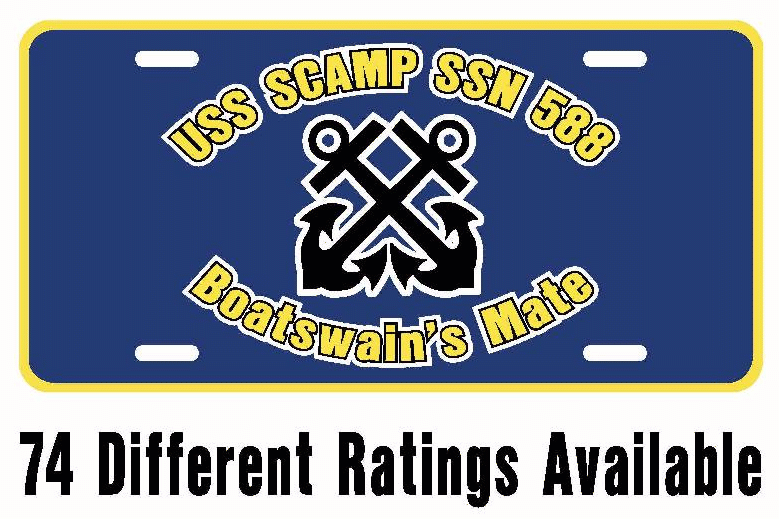 USS SCAMP SSN 588 Aluminum Rating License Plate Military USN Car Truck RV P003