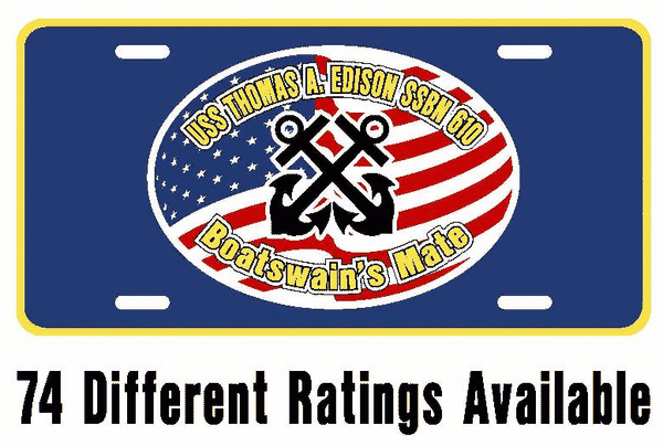 USS THOMAS A. EDISON SSBN 610 Aluminum Rating License Plate U.S. Flag Military USN Car Truck RV P004