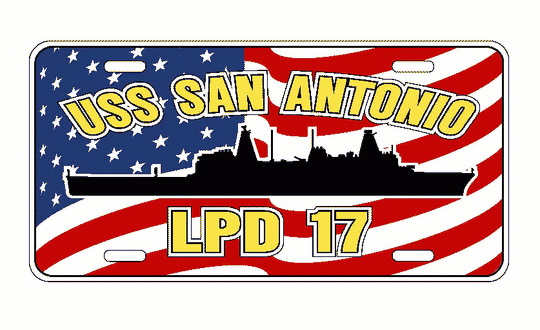 USS SAN ANTONIO LPD 17 Aluminum License Plate U.S. Flag Military USN Car Truck RV P002