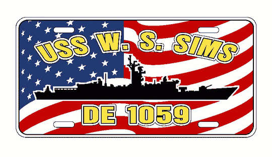 USS W S SIMS DE 1059 Aluminum License Plate U.S. Flag Military USN Car Truck RV P002