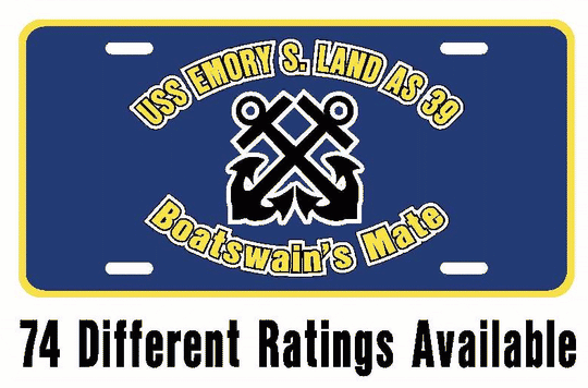 USS EMORY S LAND AS 39 Aluminum Rating License Plate Military USN Car Truck RV P003