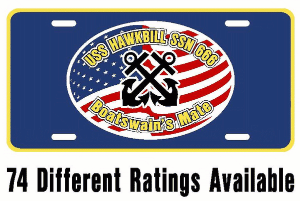 USS HAWKBILL SSN 666 Aluminum Rating License Plate U.S. Flag Military USN Car Truck RV P007