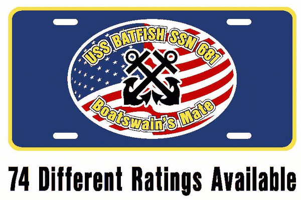 USS BATFISH SSN 681 Aluminum Rating License Plate U.S. Flag Military USN Car Truck RV P007