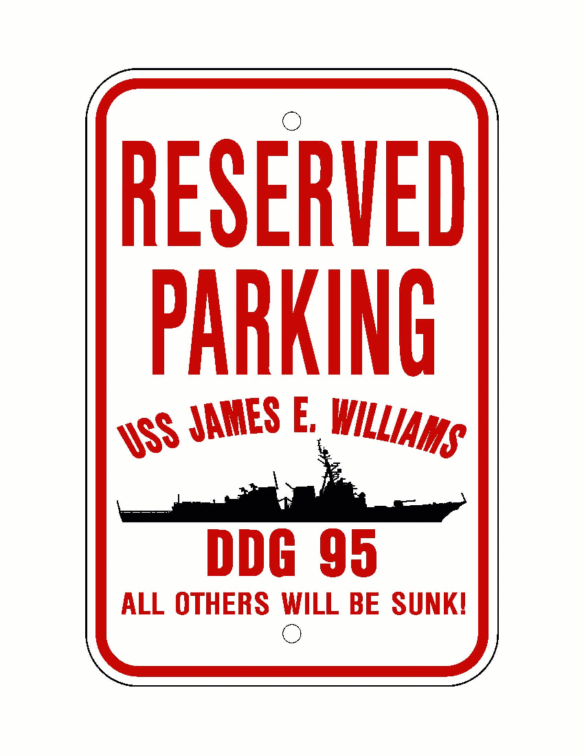 USS JAMES E WILLIAMS DDG 95 Aluminum Parking Sign Red / White 12" x 18" Military USN PS002