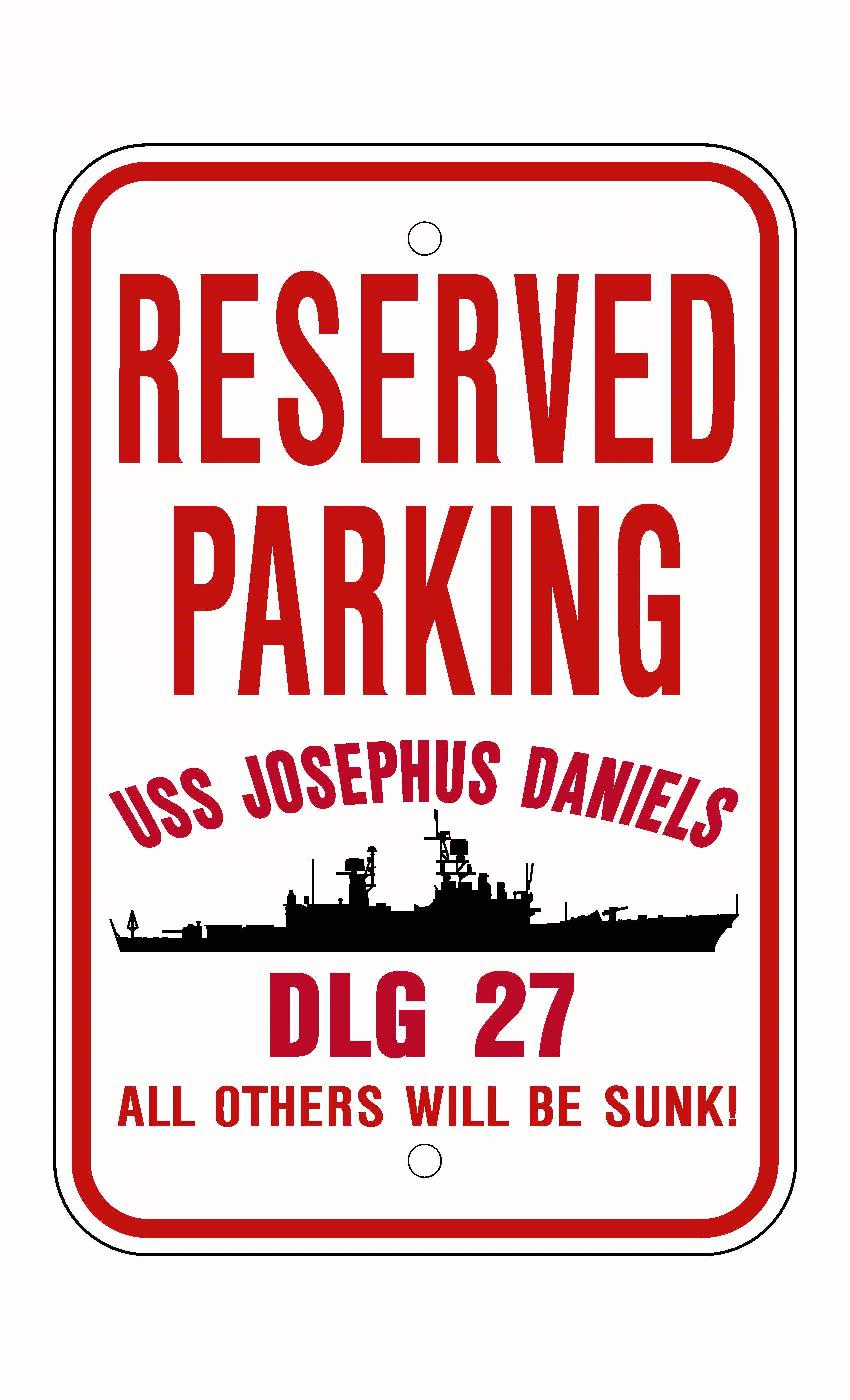 USS JOSEPHUS DANIELS DLG 27 Aluminum Parking Sign Red / White 12" x 18" Military USN PS002