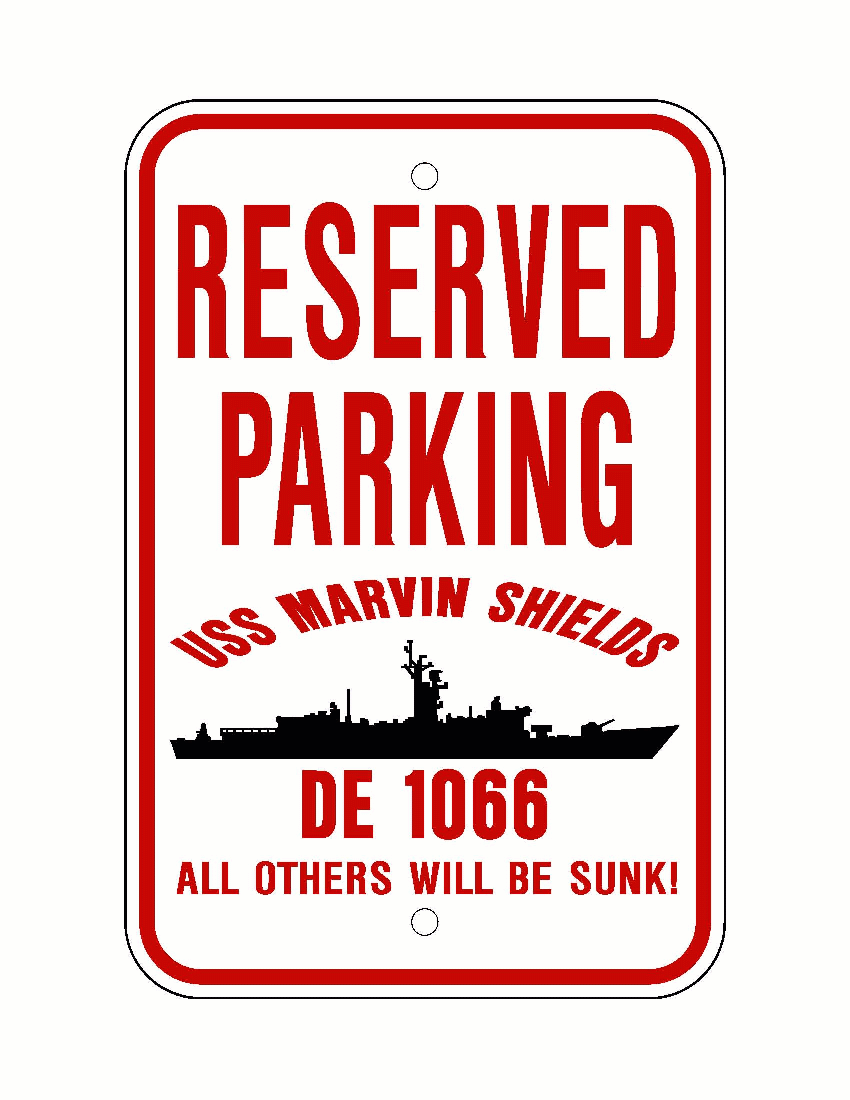 USS MARVIN SHIELDS DE 1066 Aluminum Parking Sign Red / White 12" x 18" Military USN PS002