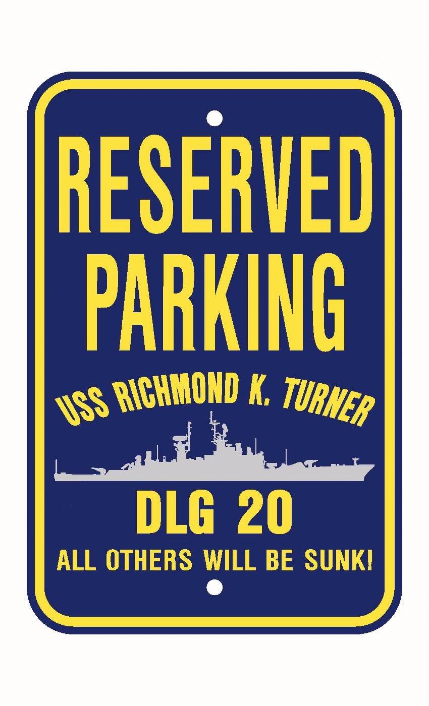 USS RICHMOND K TURNER DLG 20 Aluminum Parking Sign Navy Blue / Yellow 12" x 18" Military USN PS003