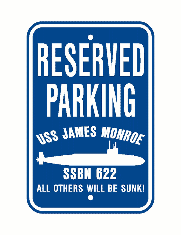 USS JAMES MONROE SSBN 622 Aluminum Parking Sign Blue / White 12" x 18" Military USN PS001