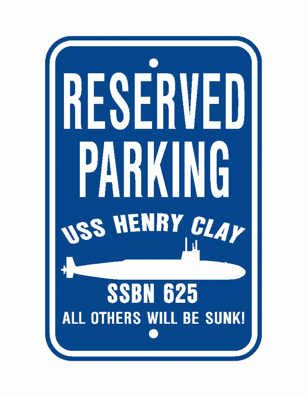 USS HENRY CLAY SSBN 625 Aluminum Parking Sign Blue / White 12" x 18" Military USN PS001