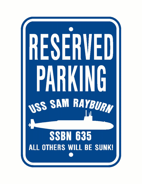 USS SAM RAYBURN SSBN 635 Aluminum Parking Sign Blue / White 12" x 18" Military USN PS001