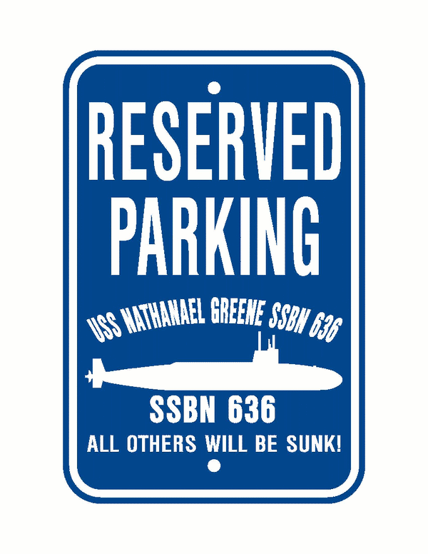 USS NATHANAEL GREENE SSBN 636 Aluminum Parking Sign Blue / White 12" x 18" Military USN PS001