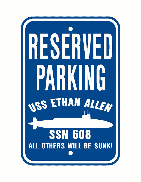 USS ETHAN ALLEN SSN 608 Aluminum Parking Sign Blue / White 12" x 18" Military USN PS001