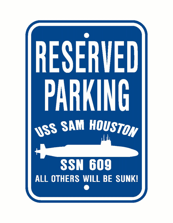 USS SAM HOUSTON SSN 609 Aluminum Parking Sign Blue / White 12" x 18" Military USN PS001