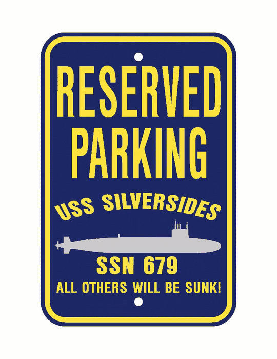 USS SILVERSIDES SSN 679 Aluminum Parking Sign Navy Blue / Yellow 12" x 18" Military USN PS003