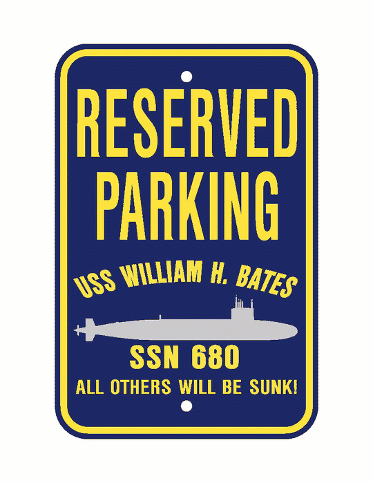 USS WILLIAM H BATES SSN 680 Aluminum Parking Sign Navy Blue / Yellow 12" x 18" Military USN PS003