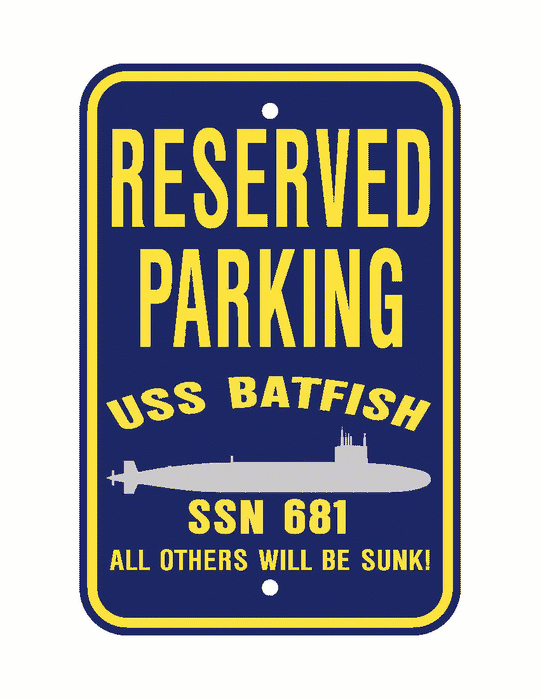 USS BATFISH SSN 681 Aluminum Parking Sign Navy Blue / Yellow 12" x 18" Military USN PS003