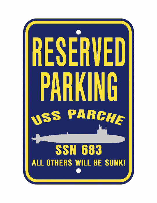 USS PARCHE SSN 683 Aluminum Parking Sign Navy Blue / Yellow 12" x 18" Military USN PS003