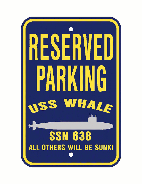 USS WHALE SSN 638 Aluminum Parking Sign Navy Blue / Yellow 12" x 18" Military USN PS003