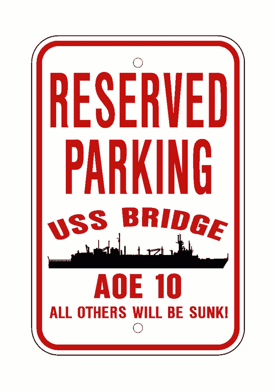 USS BRIDGE AOE 10 Aluminum Parking Sign Red / White 12" x 18" Military USN PS002