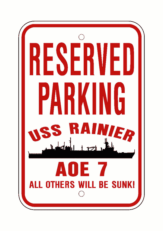 USS RAINIER AOE 7 Aluminum Parking Sign Red / White 12" x 18" Military USN PS002