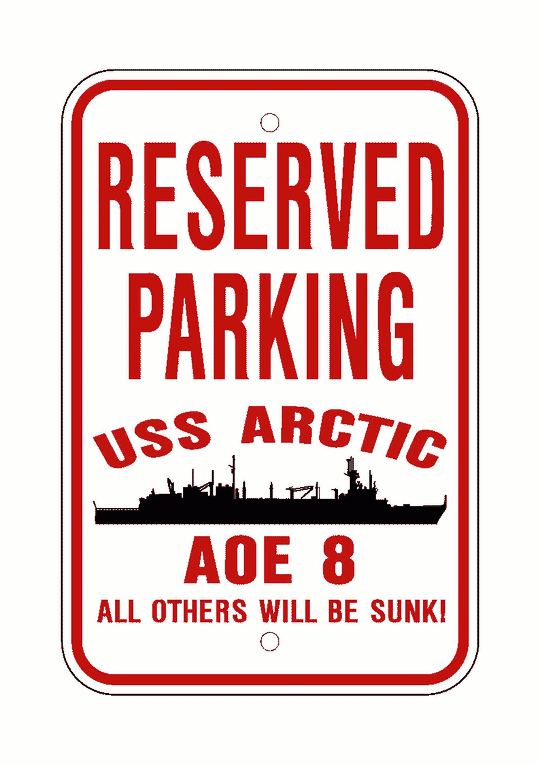 USS ARCTIC AOE 8 Aluminum Parking Sign Red / White 12" x 18" Military USN PS002