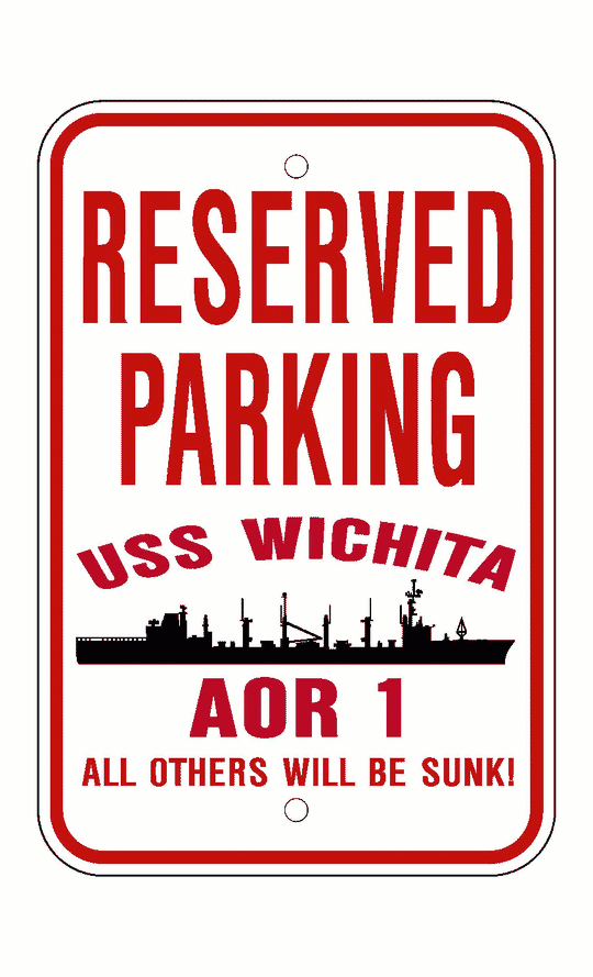 USS WICHITA AOR 1 Aluminum Parking Sign Red / White 12" x 18" Military USN PS002