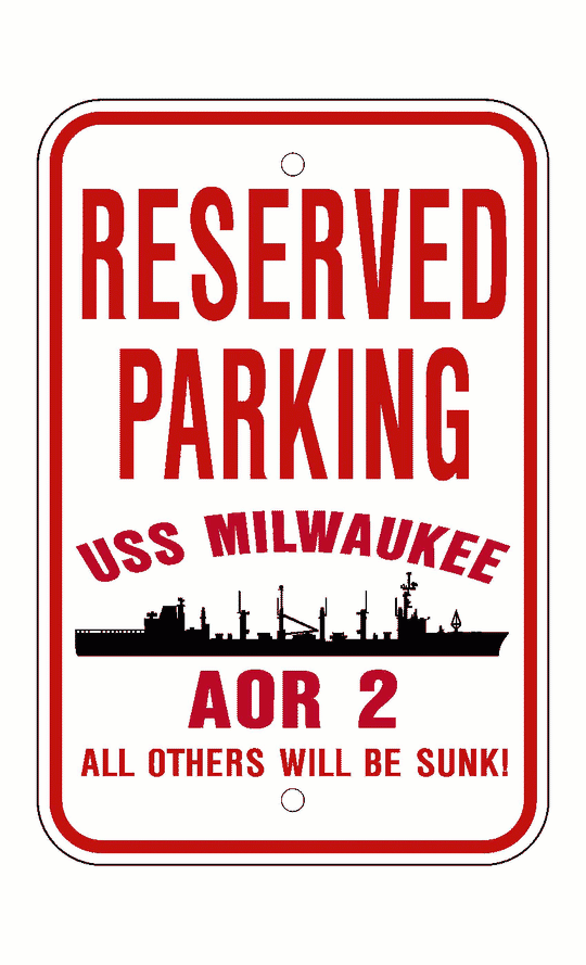 USS MILWAUKEE AOR 2 Aluminum Parking Sign Red / White 12" x 18" Military USN PS002