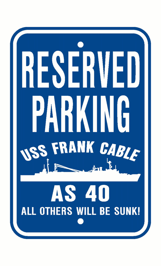 USS FRANK CABLE AS 40 Aluminum Parking Sign Blue / White 12" x 18" Military USN PS001