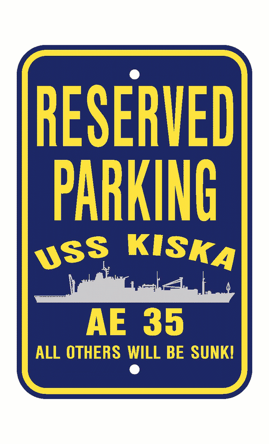 USS KISKA AE 35 Aluminum Parking Sign Navy Blue / Yellow 12" x 18" Military USN PS003