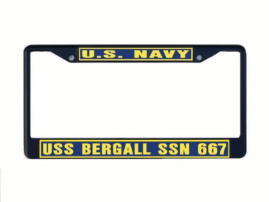 USS BERGALL SSN 667 License Plate Frame Metal or Plastic Military USN PF001