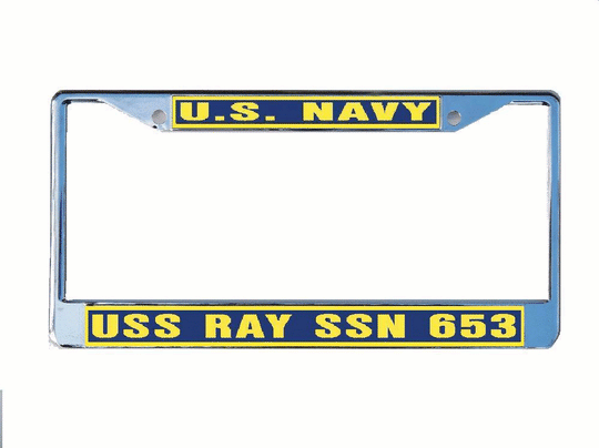 USS RAY SSN 653 License Plate Frame Metal or Plastic Military USN PF001