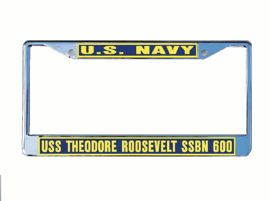 USS THEODORE ROOSEVELT SSBN 600 License Plate Frame Metal or Plastic Military USN PF001