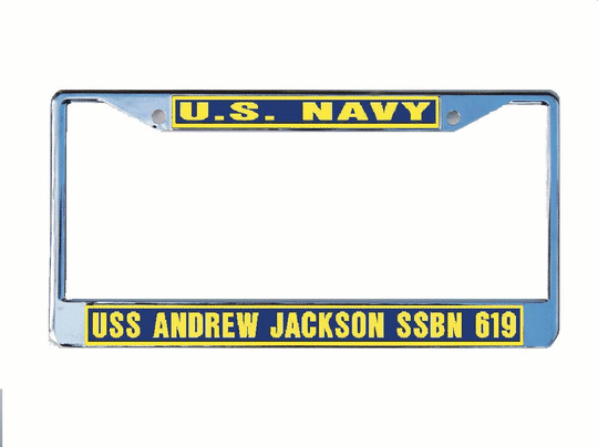 USS ANDREW JACKSON SSBN 619 License Plate Frame Metal or Plastic Military USN PF001