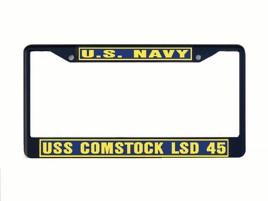USS COMSTOCK LSD 45 License Plate Frame Metal or Plastic Military USN PF001