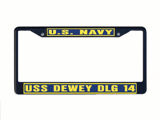USS DEWEY DLG 14 License Plate Frame Metal or Plastic Military USN PF001