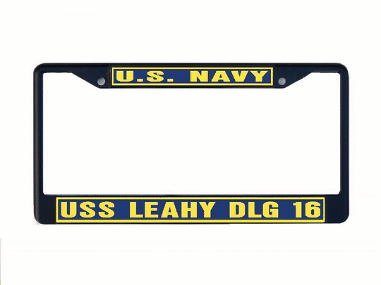 USS LEAHY DLG 16 License Plate Frame Metal or Plastic Military USN PF001