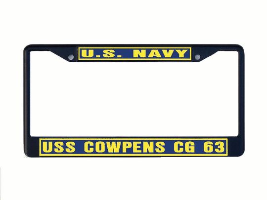 USS COWPENS CG 63 License Plate Frame Metal or Plastic Military USN PF001