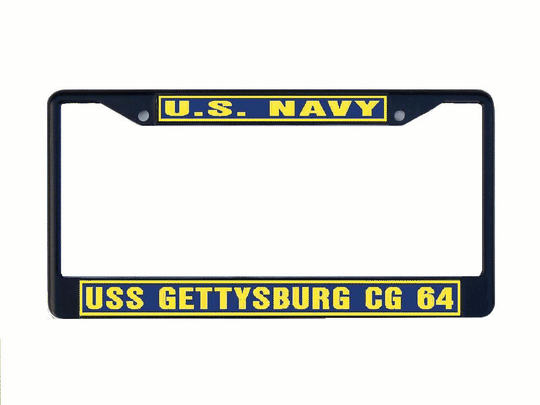 USS GETTYSBURG CG 64 License Plate Frame Metal or Plastic Military USN PF001
