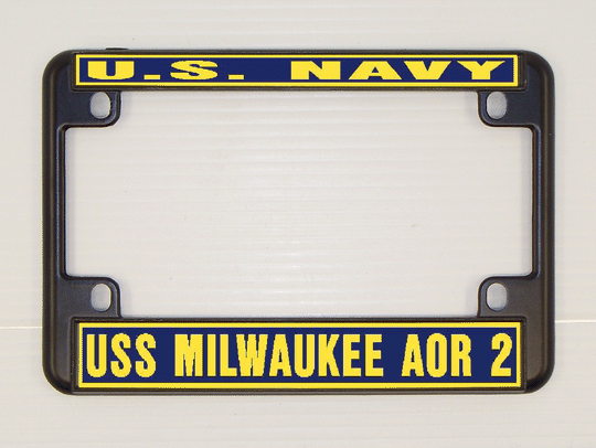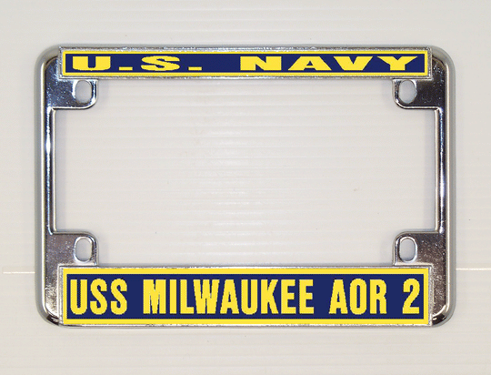 USS MILWAUKEE AOR 2 Motorcycle License Plate Frame Military USN PF003