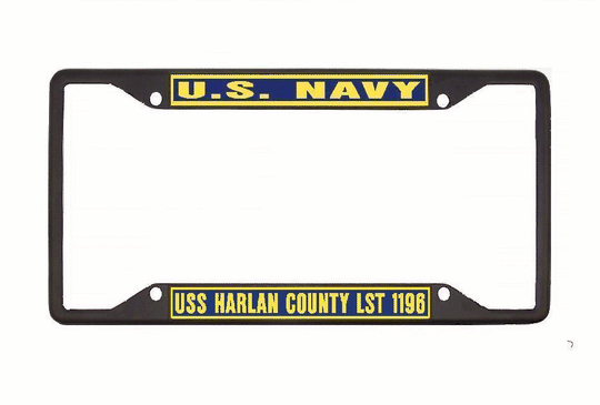 USS HARLAN COUNTY LST 1196 License Plate Frame All-State Metal Military USN PF002