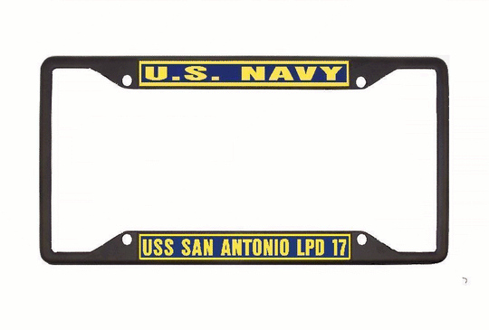 USS SAN ANTONIO LPD 17 License Plate Frame All-State Metal Military USN PF002