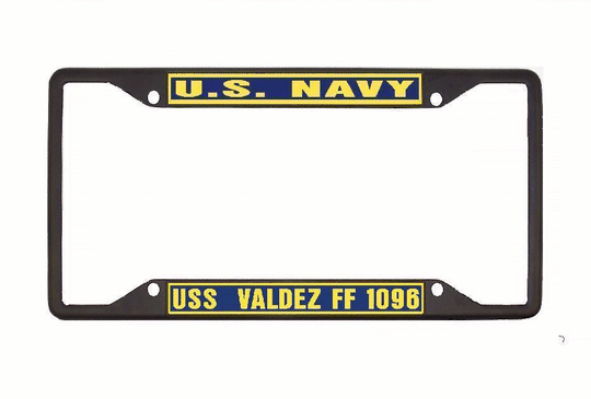 USS VALDEZ FF 1096 License Plate Frame All-State Metal Military USN PF002