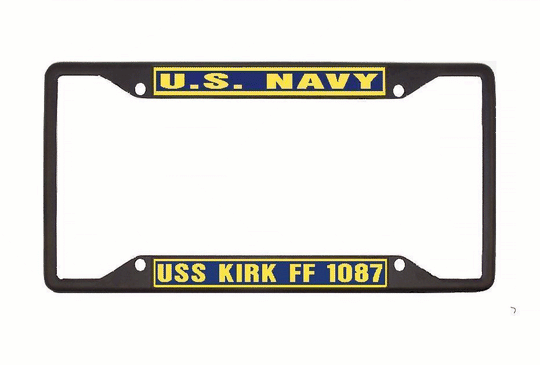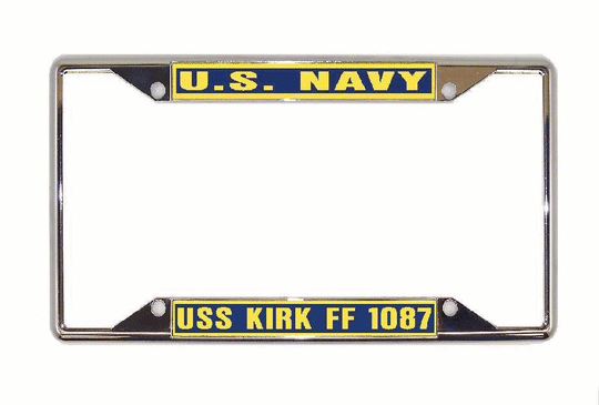 USS KIRK FF 1087 License Plate Frame All-State Metal Military USN PF002