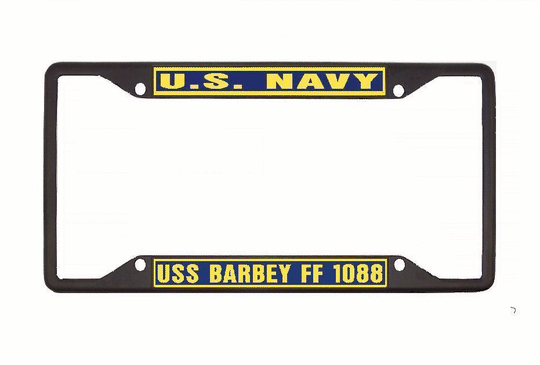 USS BARBEY FF 1088 License Plate Frame All-State Metal Military USN PF002