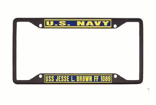 USS JESSE L BROWN FF 1089 License Plate Frame All-State Metal Military USN PF002